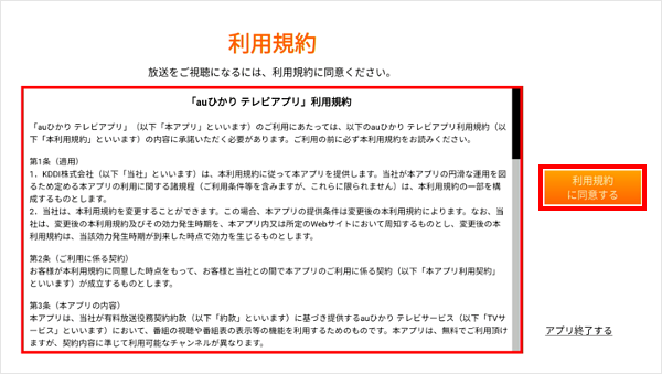 [利用規約に同意する]を選択し、リモコンの「決定」ボタンを押します。