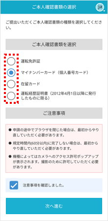 本人確認書類を選択します。
