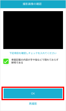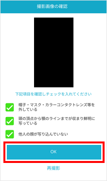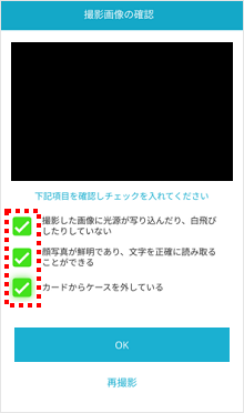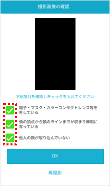 撮影が成功しましたら、画面にチェックマークが表示されます。