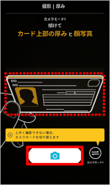 本人確認書類を画面の枠に合わせたら[カメラアイコン]をタップします。