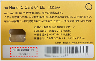 SIMカード台紙裏面の「PINロック解除コード」を入力します。