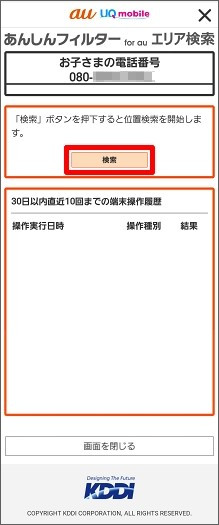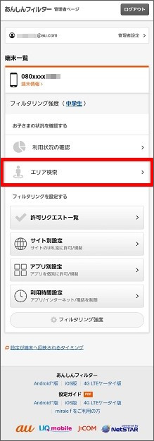 保護者さまのスマートフォンやパソコンで、「あんしんフィルター for au」の管理者ページにアクセスします。