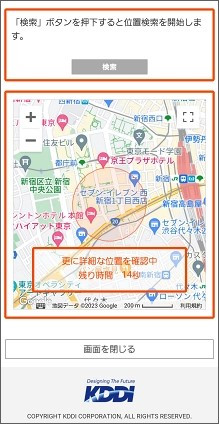 管理者ページの「エリア検索」でお子さまの居場所を確認することができます。