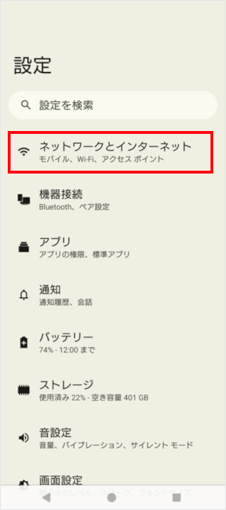 [ネットワークとインターネット]をタップします。