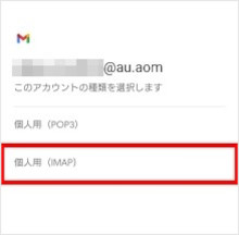 この画面が表示された場合は、[個人用(IMAP)]をタップします。