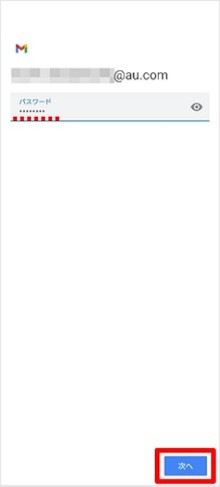 手順2でメモしたパスワードを入力し、[次へ]をタップします。