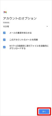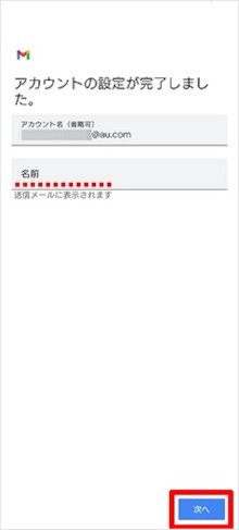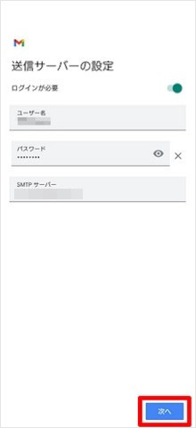 [次へ]をタップします。 ※SMTPサーバーは自動で入力されます。