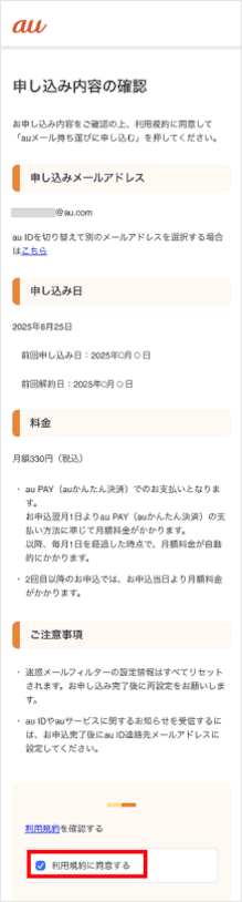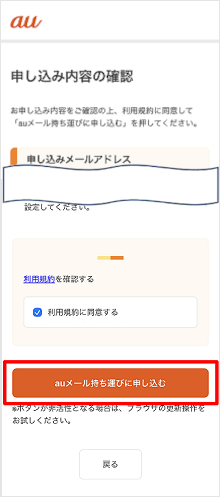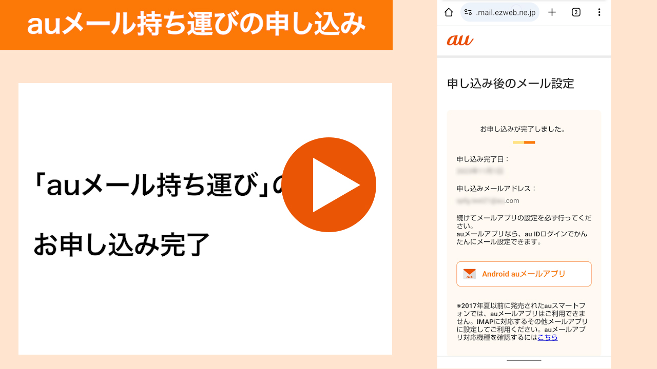 「auメール持ち運び」のWebページでお申し込みいただけます。