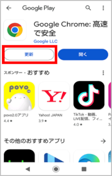 [Chromeを更新]をタップします。