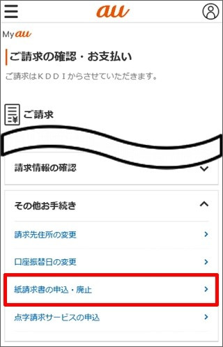 「その他のお手続き」項目の[紙請求書の申込・廃止]をタップします。
