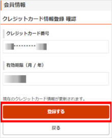 入力したクレジットカード情報をご確認の上、[登録する]をタップします。