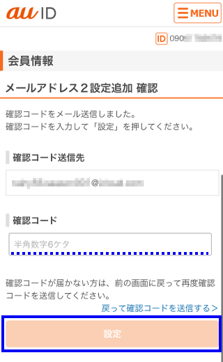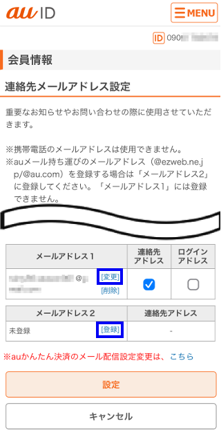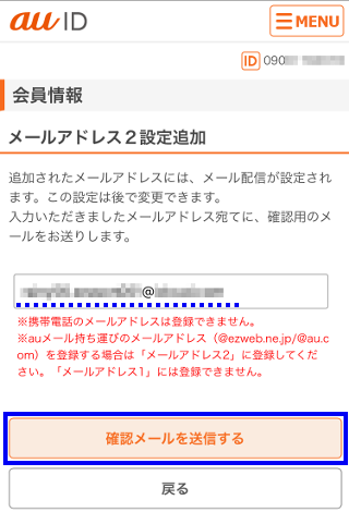 ※他のau IDでメールアドレス1に登録しているメールアドレスを、こちらのメールアドレス1には登録できません。