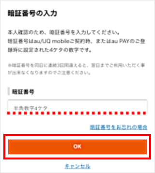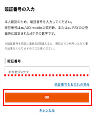 暗証番号を入力し、[OK]をタップします。 ※表示されない場合は次の手順に進みます。