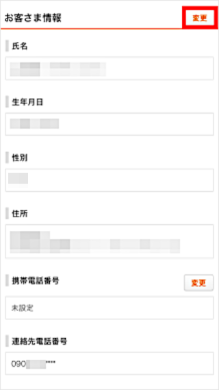 ※「お客さま情報」の箇所の[変更]をタップすると変更手続きに進めます。
