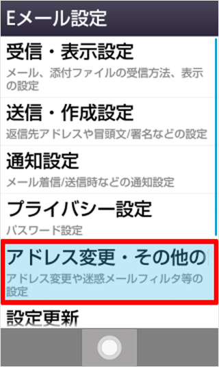 ※「アドレス変更~」が無い場合は、[その他の設定]を選択します。