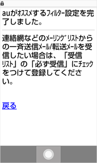 迷惑メールフィルターの設定画面で「オススメ設定」の登録ができます。