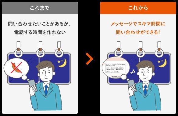 チャットでお問い合わせとは、スマートフォンのチャットアプリやホームページからチャットでお問い合わせができる窓口のことです。