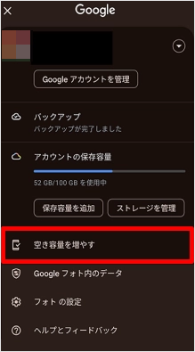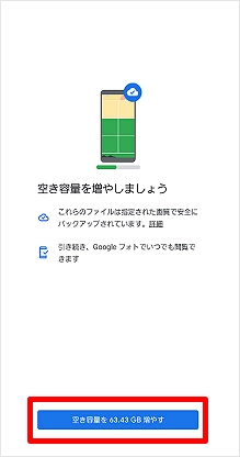 [空き容量を増やす]をタップします。