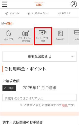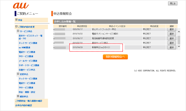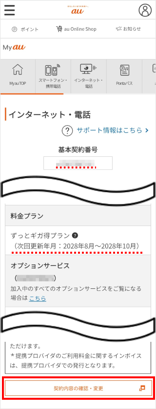 auひかりのご契約情報はMy au(Web)で確認できます。