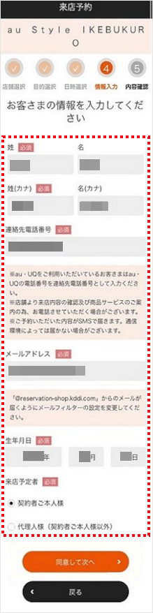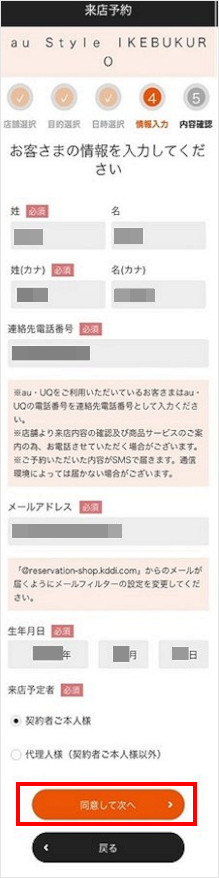 [同意して次へ]をタップします。 ※必須項目をすべて入力すると、ボタンが活性化します。