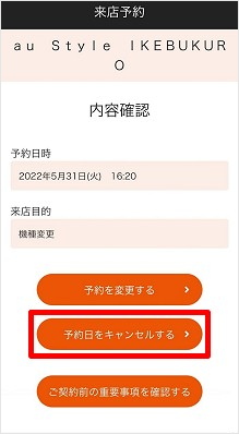 以上で、来店予約の取り消しは完了です。 ※予約取り消しが完了した旨のメールが届きます。