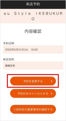 来店予約時に届いたメールで、来店予約の変更ページに進むことができます。