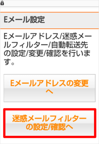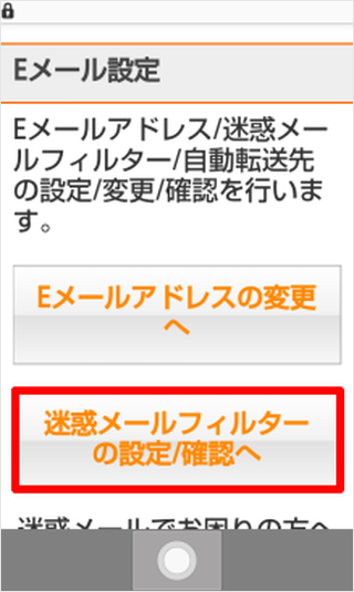 [迷惑メールフィルターの設定/確認へ]を押します。