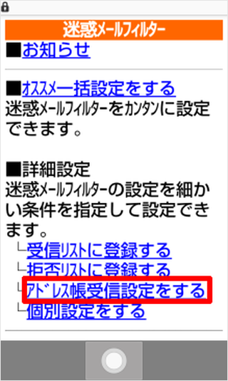 特定のメールを迷惑メールフィルターで拒否したい(4G LTEケータイ)