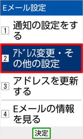 [アドレス変更・その他の設定]を押します。 ※「アドレス変更~」が無い場合は、[その他の設定]を選択します。