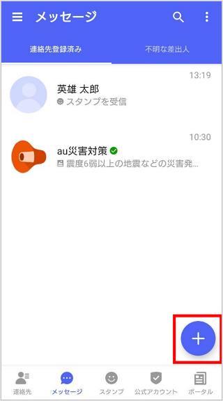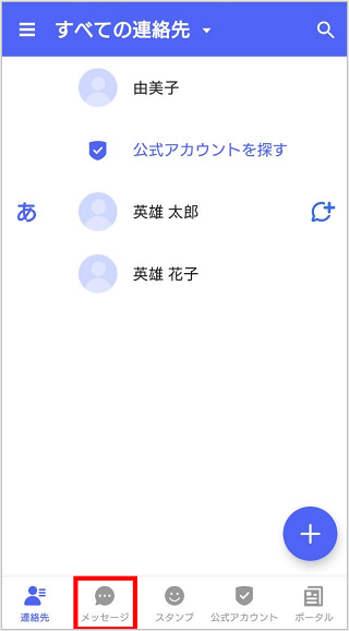 ※連絡先の右側に+メッセージのアイコンが表示されない場合はSMSでの送信となります。