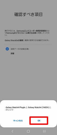 スマートフォンとGalaxy Watchに表示される番号が一致していることを確認し、[確認]をタップします。