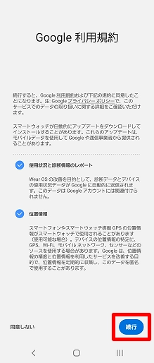 表示されているGoogle アカウントを確認し、[次へ]をタップします。