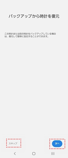 ※バックアップがない場合は、[スキップ]をタップしてください.。