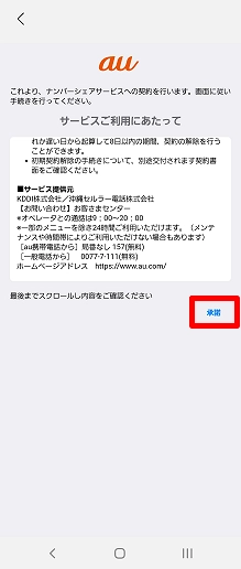 内容を最後までスクロールして確認し、[承諾]をタップします。