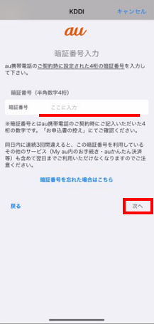 契約内容の確認方法を選択し、[次へ]をタップします。