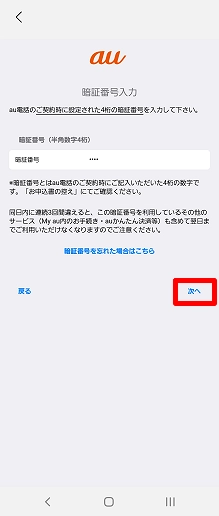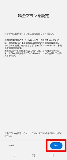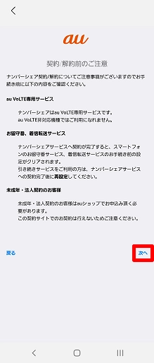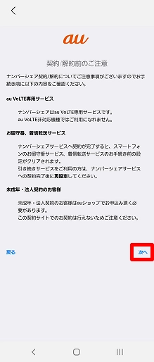 契約内容の確認方法を選択し、[次へ]をタップします。