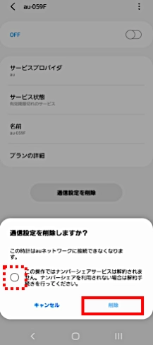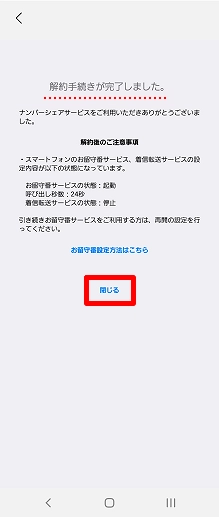 通信設定の削除が完了したら、ナンバーシェアの解約手続きの完了です。