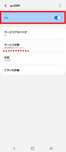 「サービス状態」が「有効期限切れのサービス」になっているのを確認のうえ、ONになっている上部のスイッチをタップしてOFFにします。
