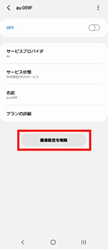 [閉じる]をタップします。続いて、通信設定の削除をします。