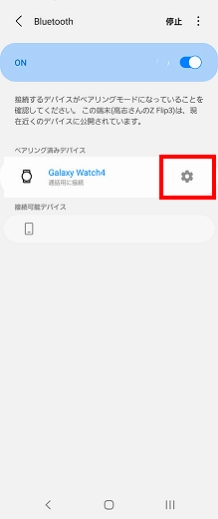 ペアリング済みの「デバイス名」の歯車アイコンをタップします。