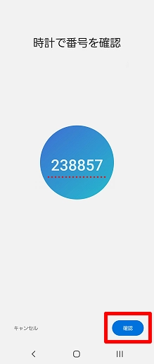 スマートフォンとGalaxy Watchに表示される番号が一致していることを確認し、[確認]をタップします。