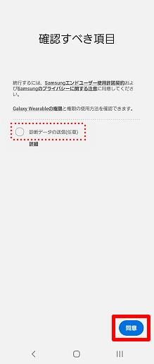 「診断データの送信」にチェックを入れ、[同意]をタップします。