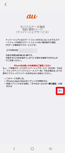 機種変更(修理)前の操作(ナンバーシェアの解約)
