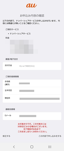 内容を確認し、[この内容で申し込みをする]をタップします。