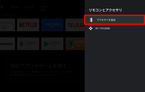 [アクセサリを追加]を選択し、リモコンの[決定]ボタンを押します。