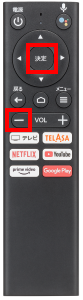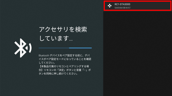 「アクセサリを検索しています」と表示されたら、リモコンの[決定]ボタンと「VOL」の[-]を同時に長押しします。