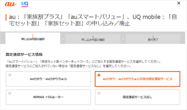 [auひかり・auひかりちゅら以外の固定通信サービス]をクリックします。
