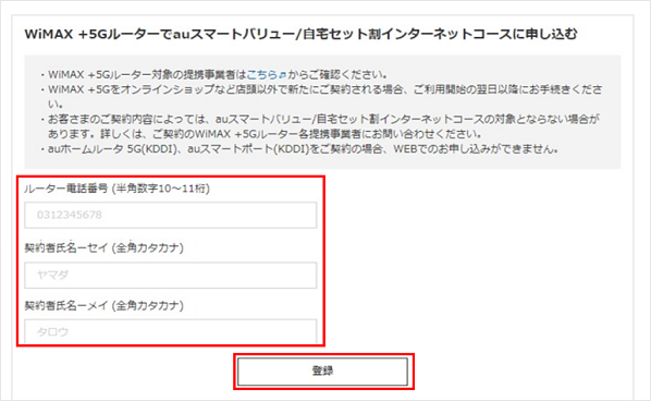 ルーター電話番号などの情報を入力し、[登録]をクリックします。