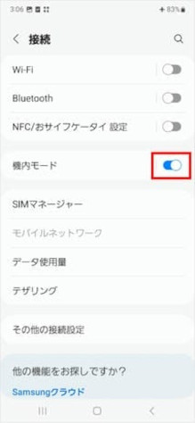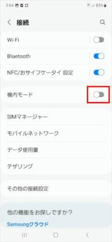 [機内モード]のスイッチをタップしてオフにします。