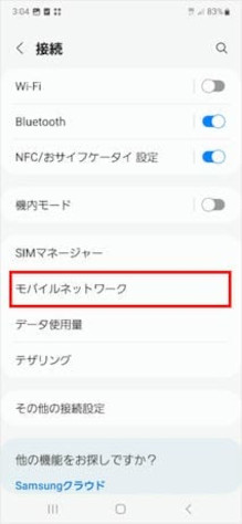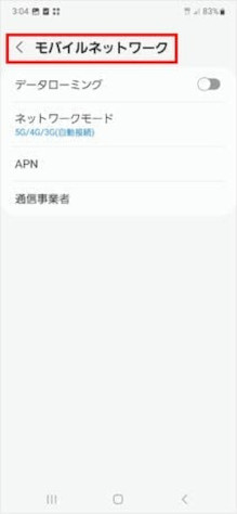 [モバイルネットワーク]をタップして1つ前の画面に戻ります。